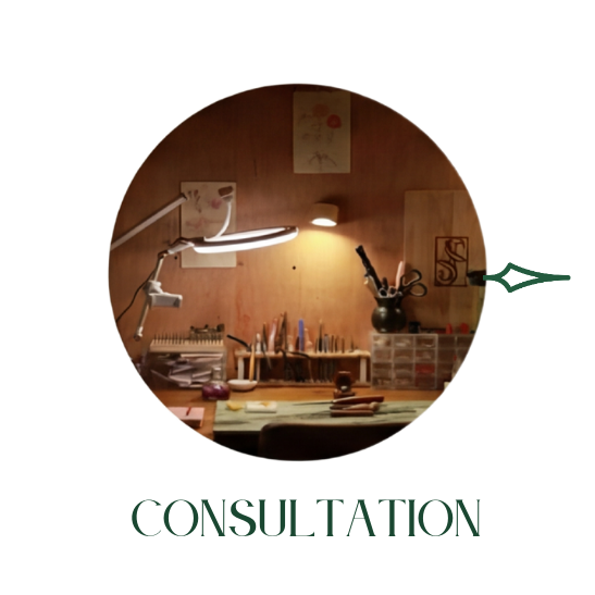 I take appointments both online, and in person at my London Studio. So whether you're accross the pond or local, it would be great to chat and I can show you my process