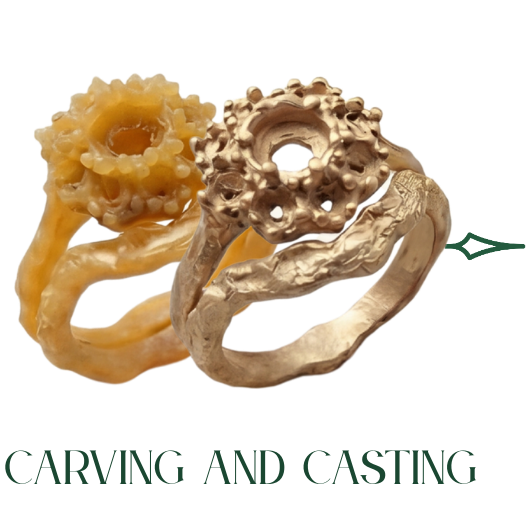 Carved from beeswax, and cast into gold, recreating ancient processes to make Jewellery that transcends time.Start your Bespoke Journey here.